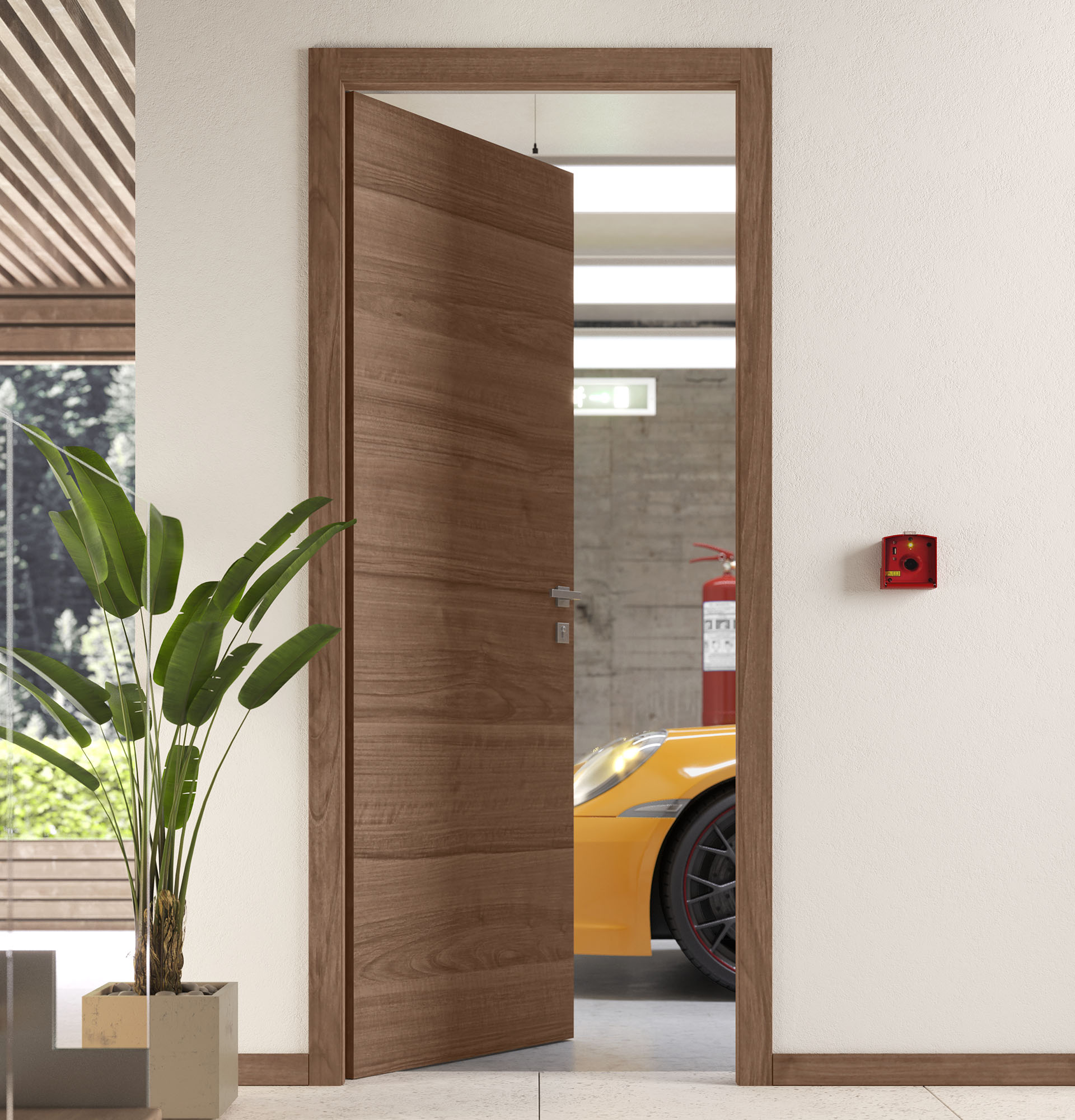 Âme pleine 35 mm en panneau de particules de bois, dans des montants en sapin massif 150 x 35 renforcé par U métal, parements en mdf hydrofuge 4 mm avec revêtement en mélaminé haute structure