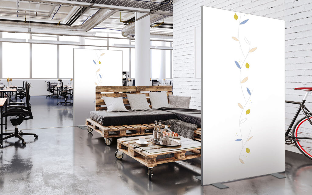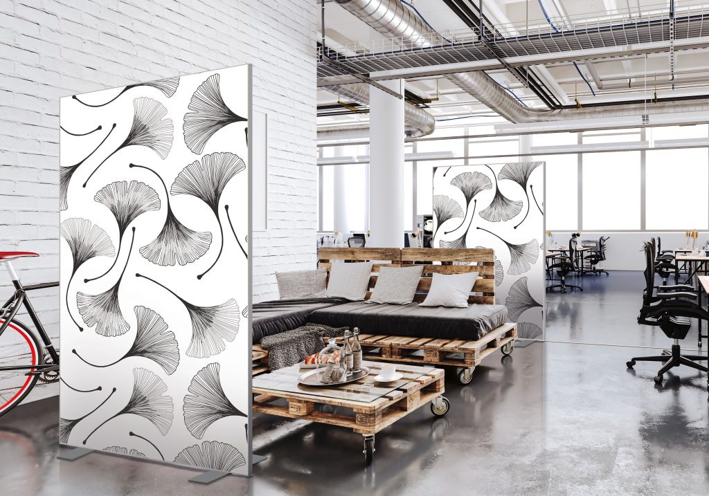 Cloisons amovibles sur pieds, hauteur 1,90 m, largeur 1,50 m, modèle Gingko blanc