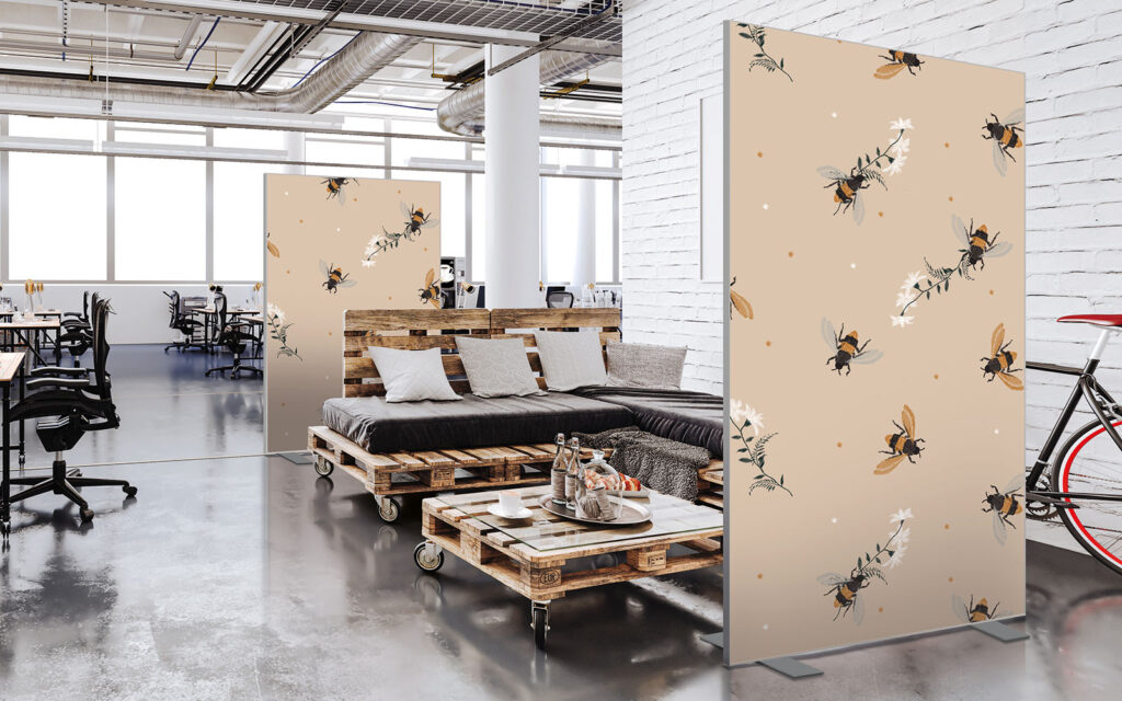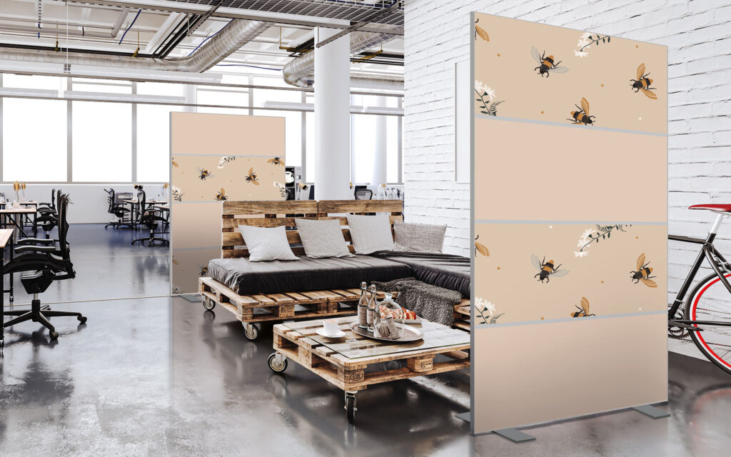 Avec son absorbant phonique, cette séparation est idéale pour un bureau. Cependant, la toile Imago étant anti-feu et anti-humidité, cette cloison séparative peut s’installer dans toutes les pièces. Lavable en machine, elle s’entretient très facilement, ce qui lui donne une place de choix dans les environnements collectifs comme les vestiaires, les crèches, les MJC, les centres aérés, etc.