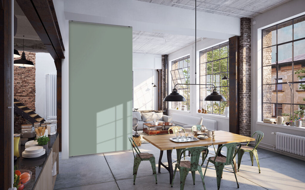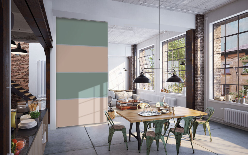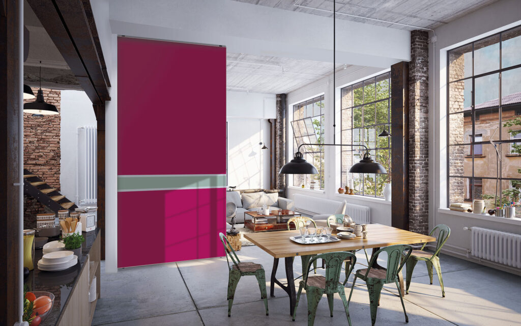 Dans une décoration à dominante verte, par exemple, une cloison rose pastel, terracotta ou rouge pivoine peut créer un contraste intéressant.