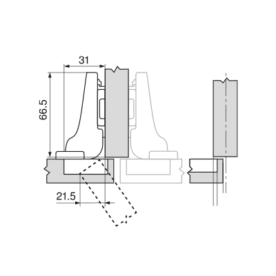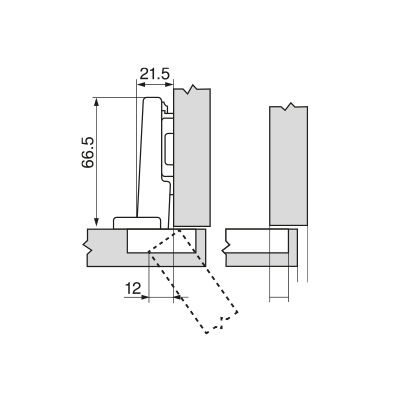 Charnière coudée de 0 (applique).Recouvrement 17 mm sur élément vertical.