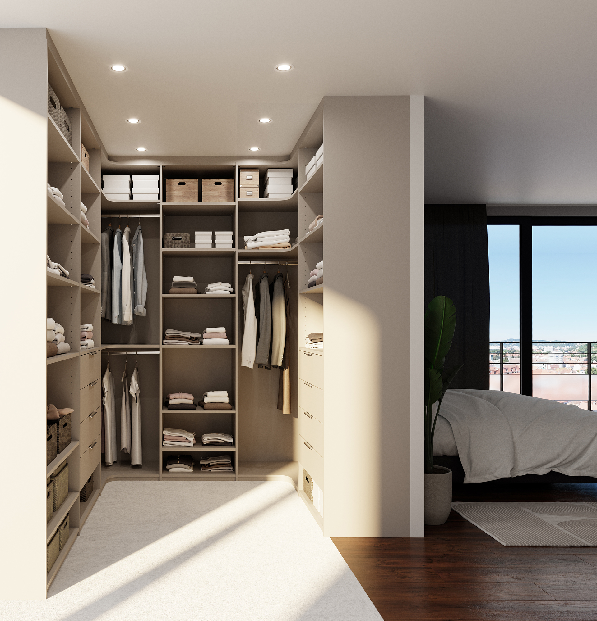 Un dressing en U permet de créer un espace distinct de la partie couchage.