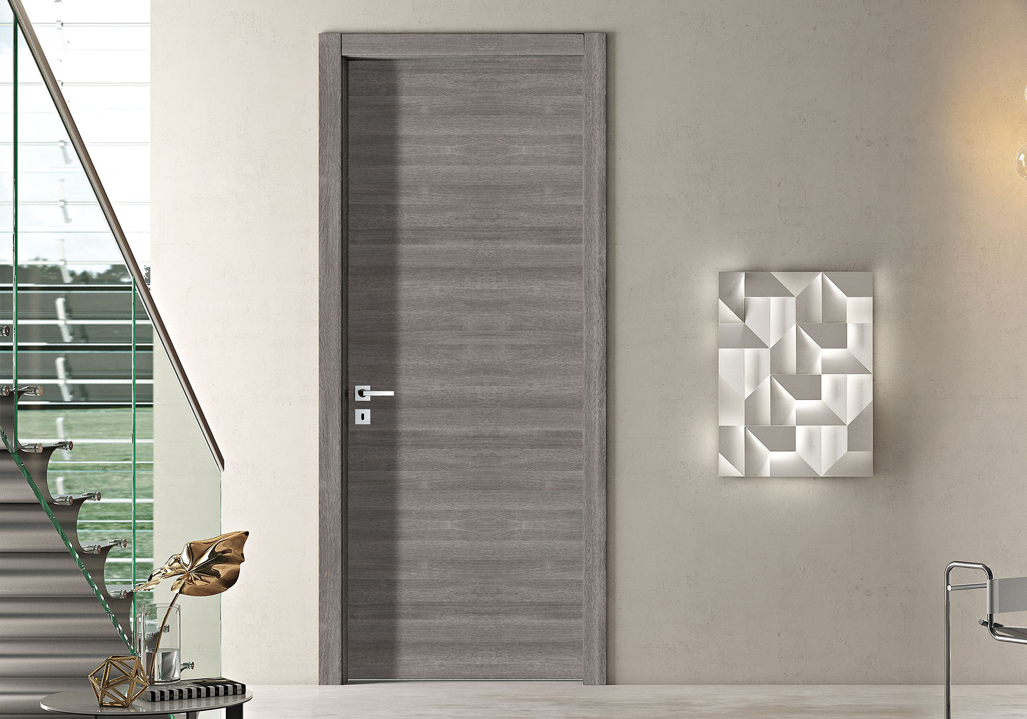 La gamme DÉCO apporte de nouvelles dimensions à la porte d’intérieur à travers différentes options : vitrage, inserts métalliques, rainures ou moulures.