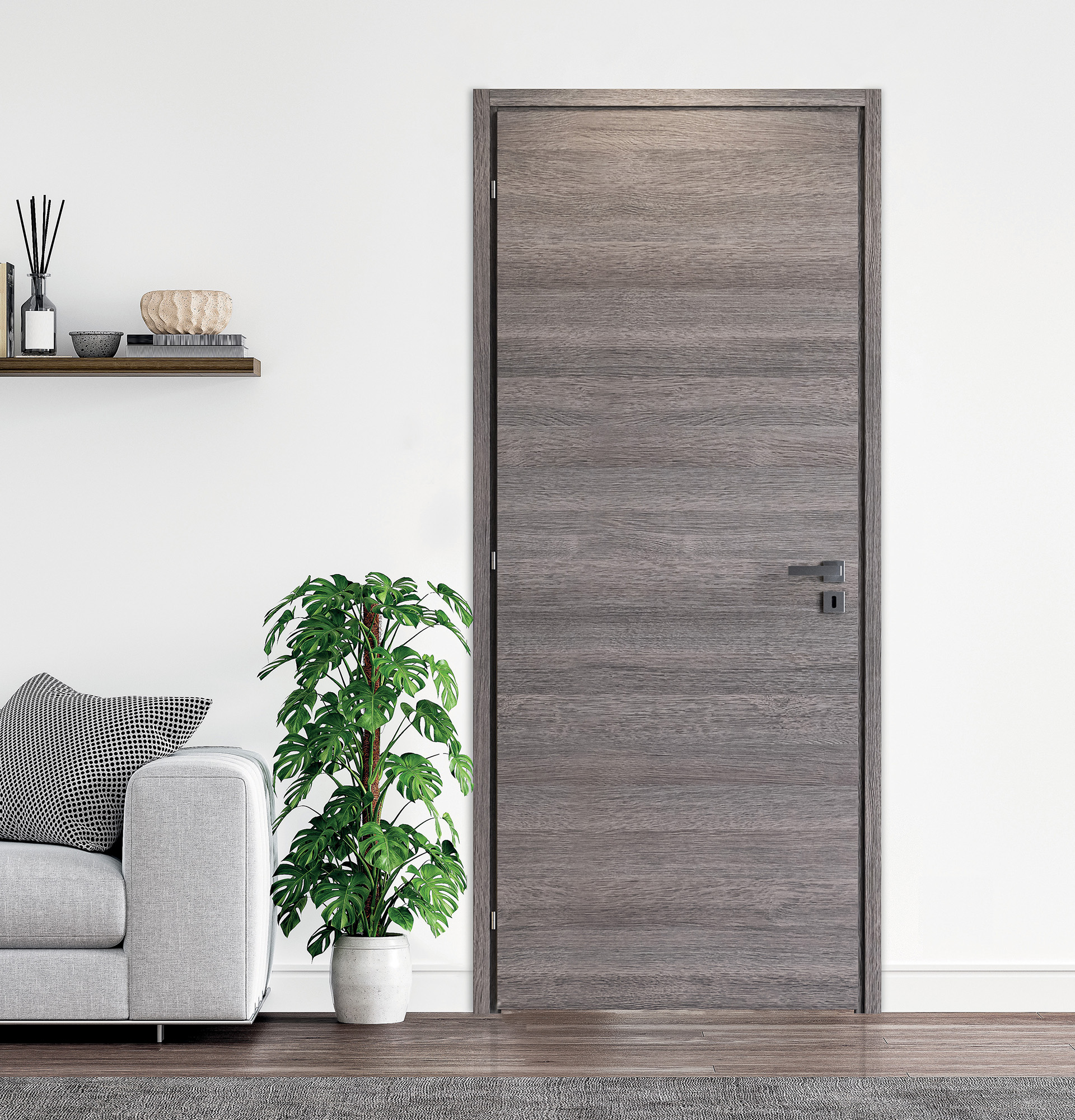 À chants droits, cette porte s’aligne parfaitement sur les couvre-joints.