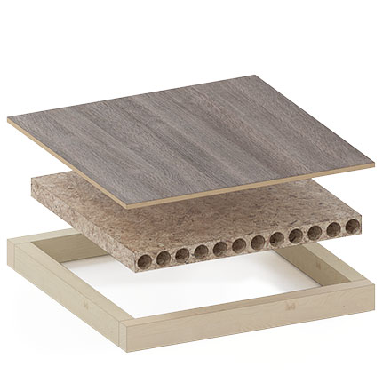 - Âme tubulaire dans un panneau de particules, inséré dans un cadre en pin massif