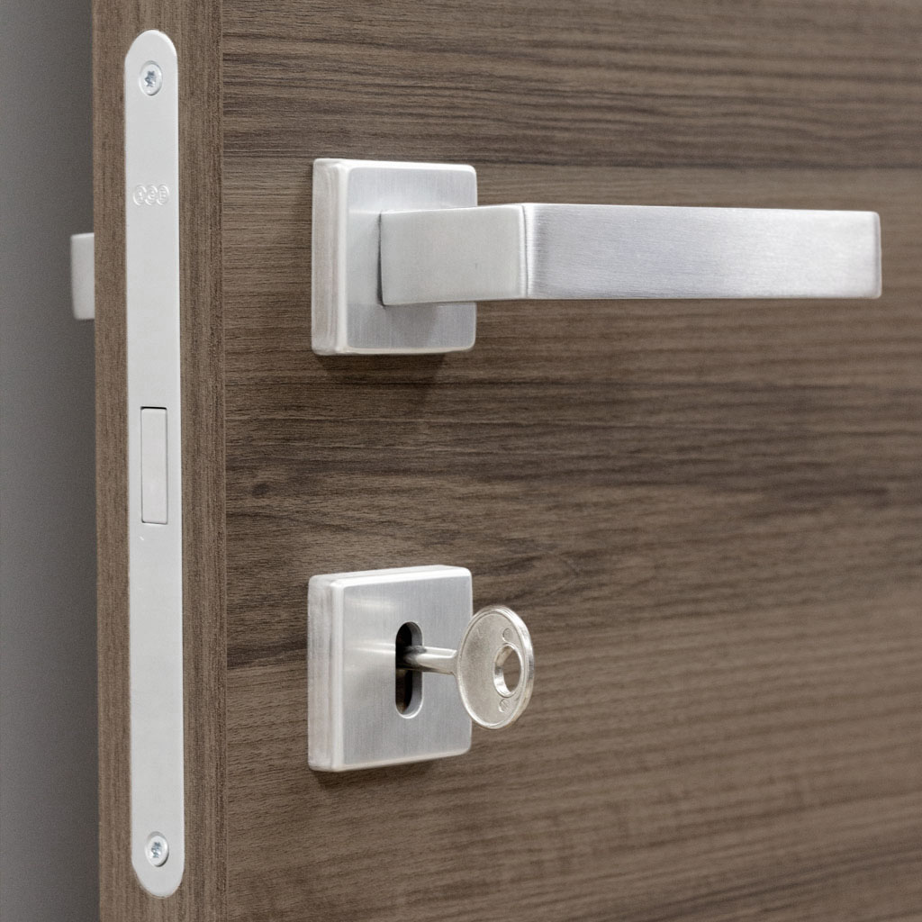 - Une serrure à clé L, grand classique des portes d’intérieur pour un usage domestique.