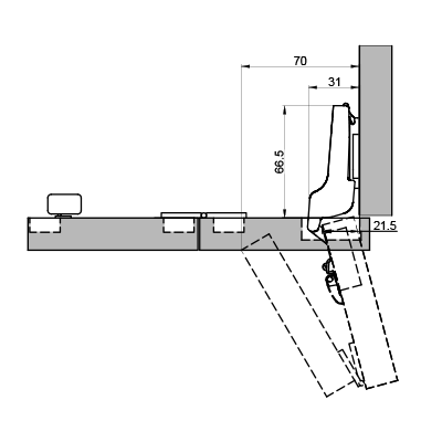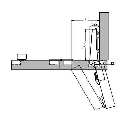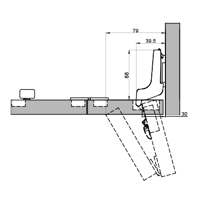 Nos portes sur charnières invisibles sont équipées de charnières à ouverture 110° avec amortisseurs intégrés. Voir les autres charnières dans la section "Ouverture" plus bas.