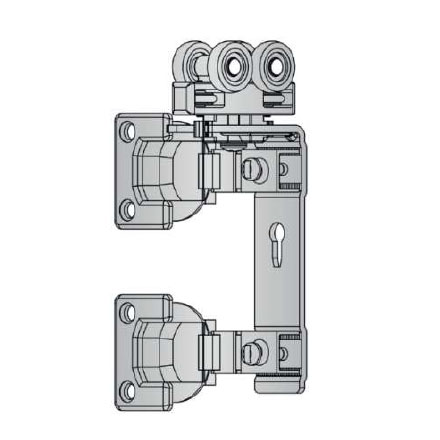 Guide haut avec roulements. Cornière de guidage bas avec platine en option.