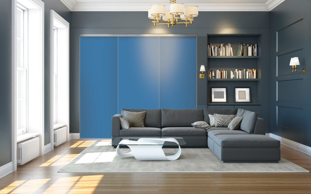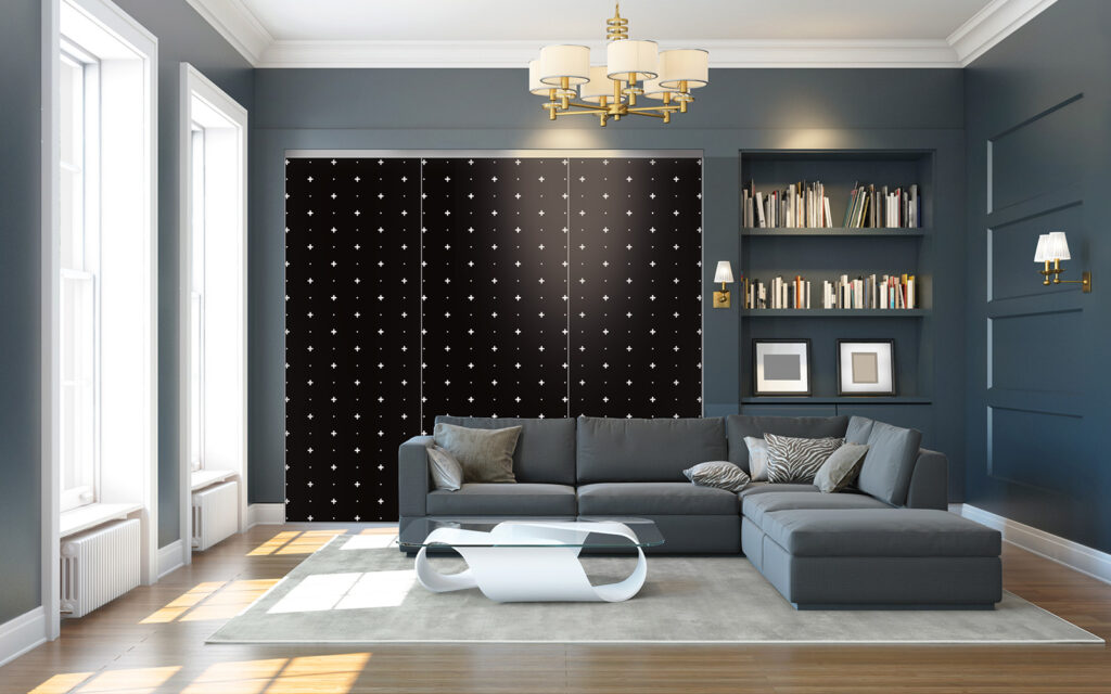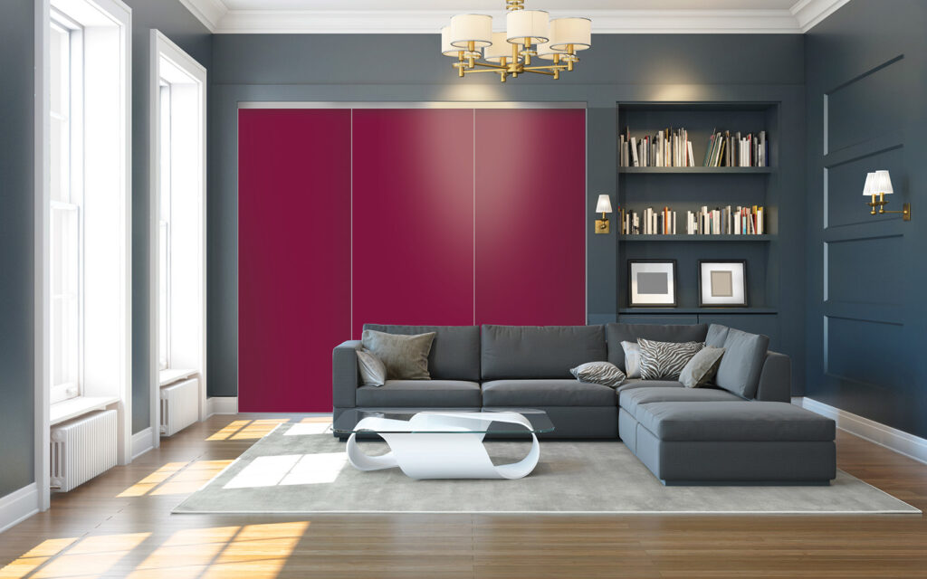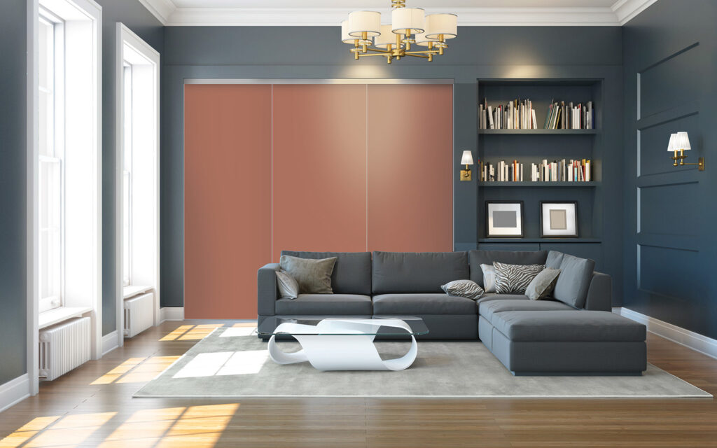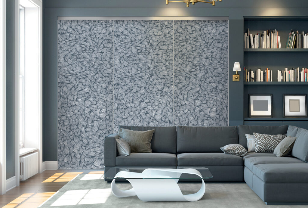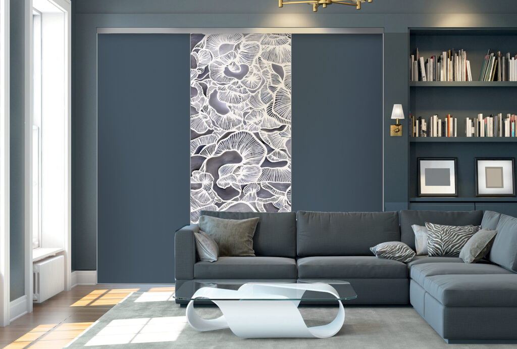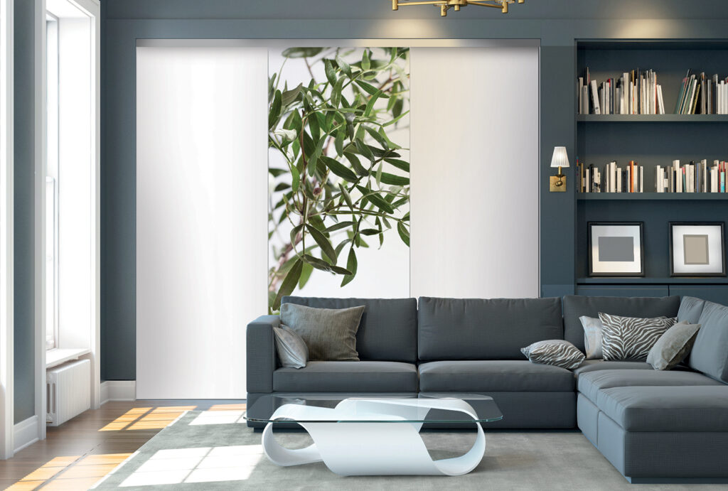 Imago se démarque des autres portes par sa structure innovante, qui dissimule bien des avantages. Si elle se monte sur des rails comme toutes les portes coulissantes, cette variante se compose de vantaux avec une toile en polyester glissée dans un cadre en aluminium. Elle peut être complétée par une mousse acoustique pour améliorer le confort de la pièce où elle est installée. Et, comme la plupart des produits Coulidoor, cette façade est entièrement fabriquée sur mesure.