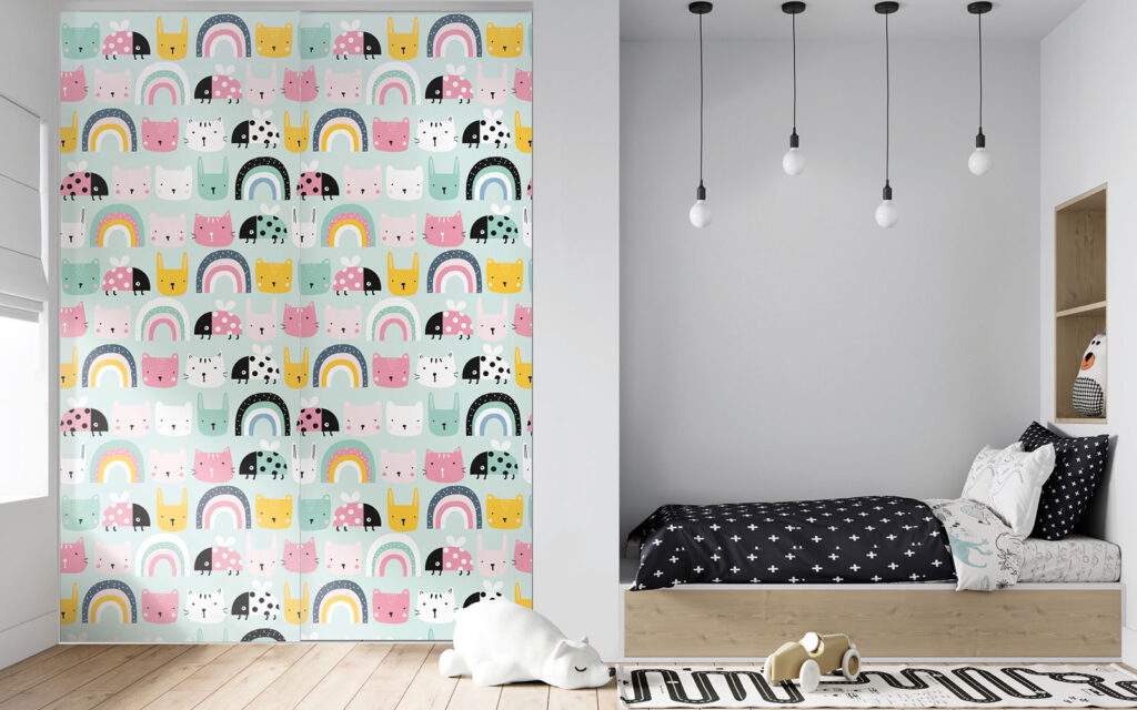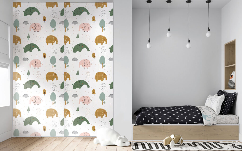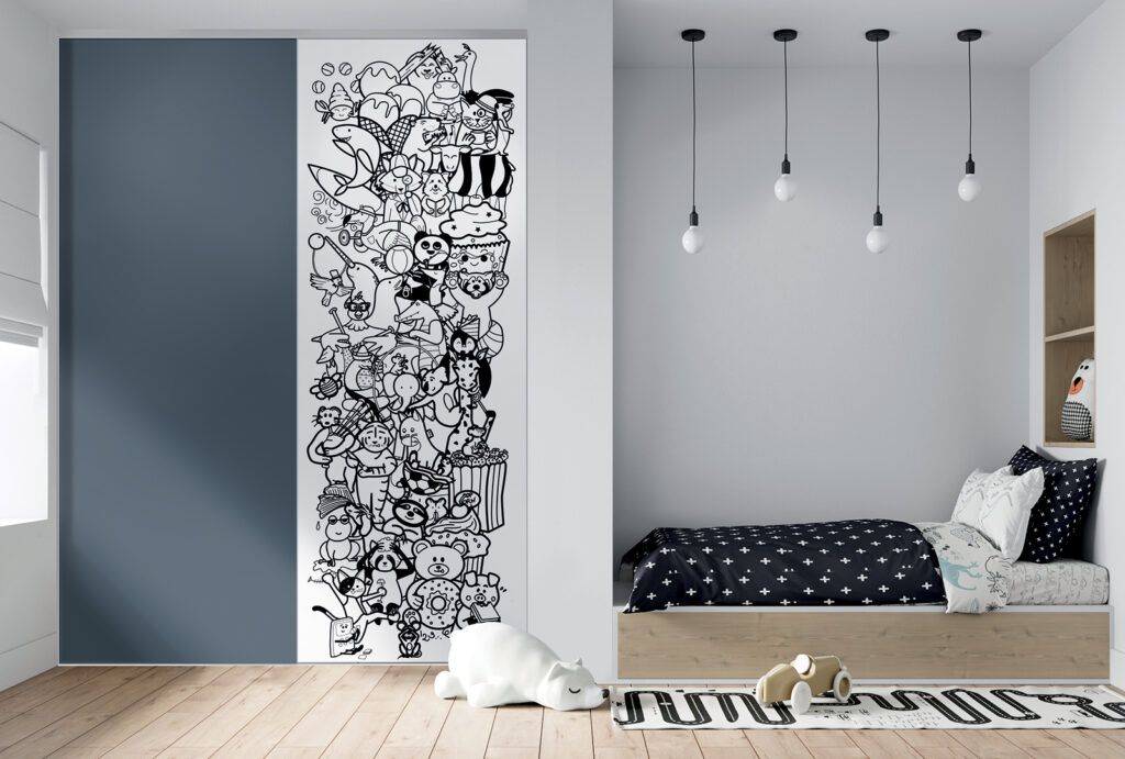 Vous changez souvent de décoration ? Vous avez peur que vos enfants se lassent de l’ambiance de leur chambre en grandissant ? Les portes de placard Imago permettent d’évoluer au fil du temps grâce à leur toile imprimée. En un clin d’œil, vous retirez le joint du cadre et vous remplacez le visuel par un nouveau dont le motif est plus à votre goût.