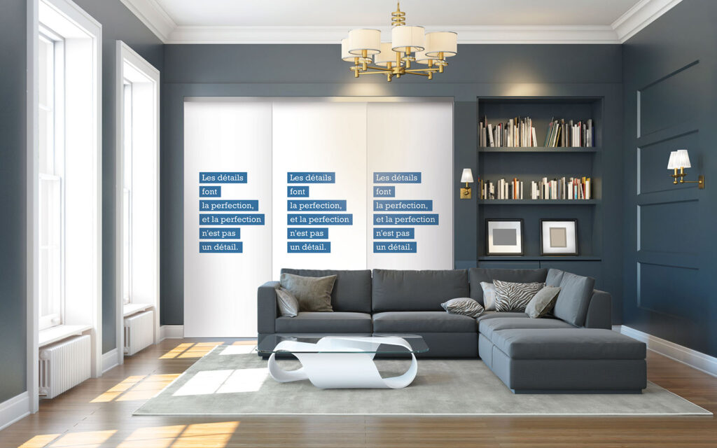 En isolant votre rangement, vous abritez vos affaires de la poussière et de la lumière du soleil qui tend à décolorer la matière. Parce qu’elles vont jusqu’à une hauteur de 3 mètres, les portes de placard coulissantes Imago permettent de protéger des espaces assez grands. En largeur, vous pouvez recouvrir toutes les dimensions possibles. Il suffit pour cela d’installer autant de vantaux que vous le souhaitez et de les faire coulisser sur les rails correspondants. Ces portes sont fabriquées sur mesure afin de couvrir l’ensemble du dressing ou du placard à camoufler. Dès lors, vous n’avez plus qu’à laisser votre créativité s’exprimer pour habiller votre intérieur.