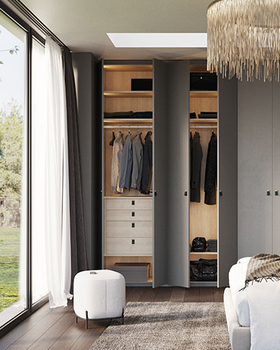 Concevez votre projet grâce au configurateur 3D. Hauteur, largeur, nombre de vantaux, finitions… Découvrez les  nombreuses possibilités des portes sur mesure.