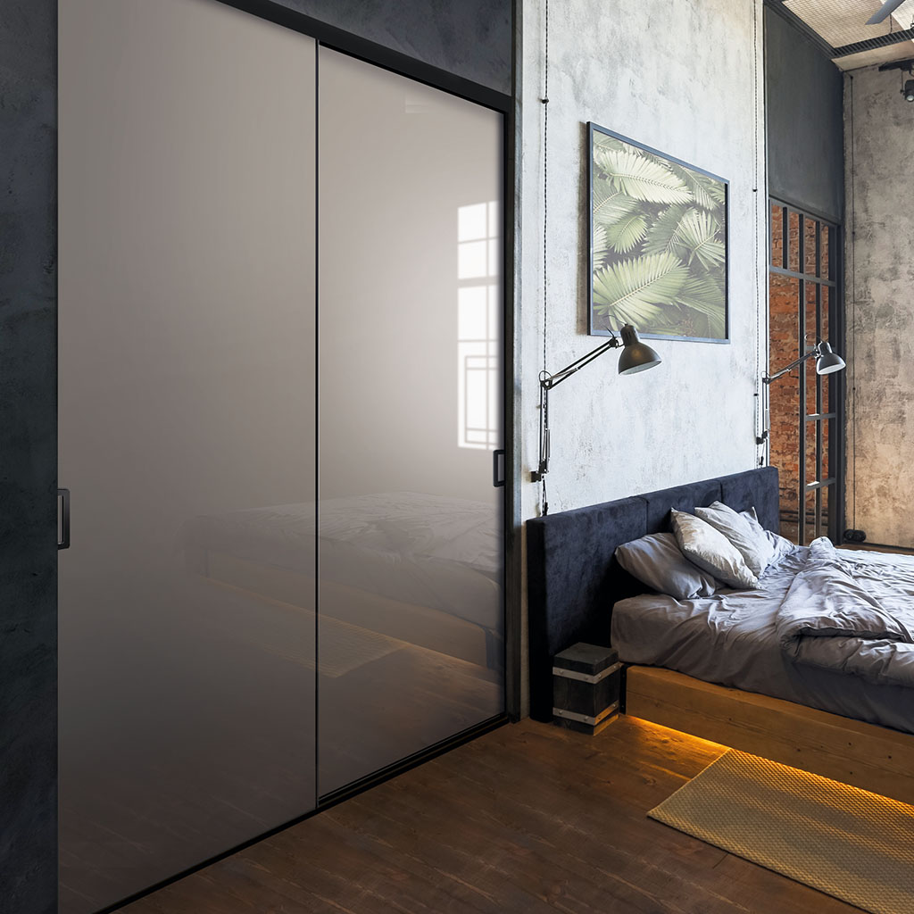 Vitres laquées, vitres Contrast, miroirs, décors… Votre porte coulissante peut jouer avec les couleurs, les textures, les reflets.  Avec la large palette à disposition, votre porte peut s’intégrer dans tous les intérieurs.