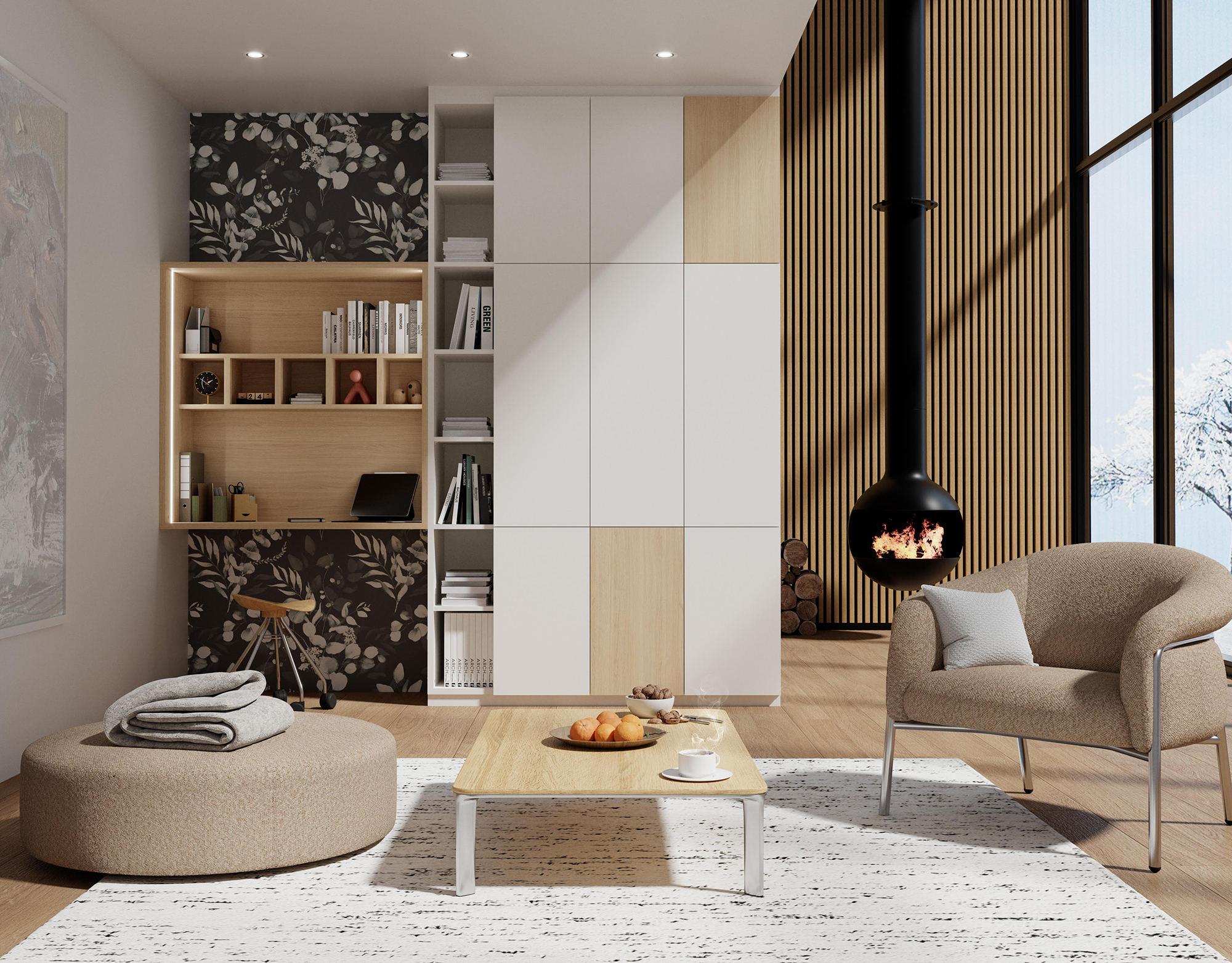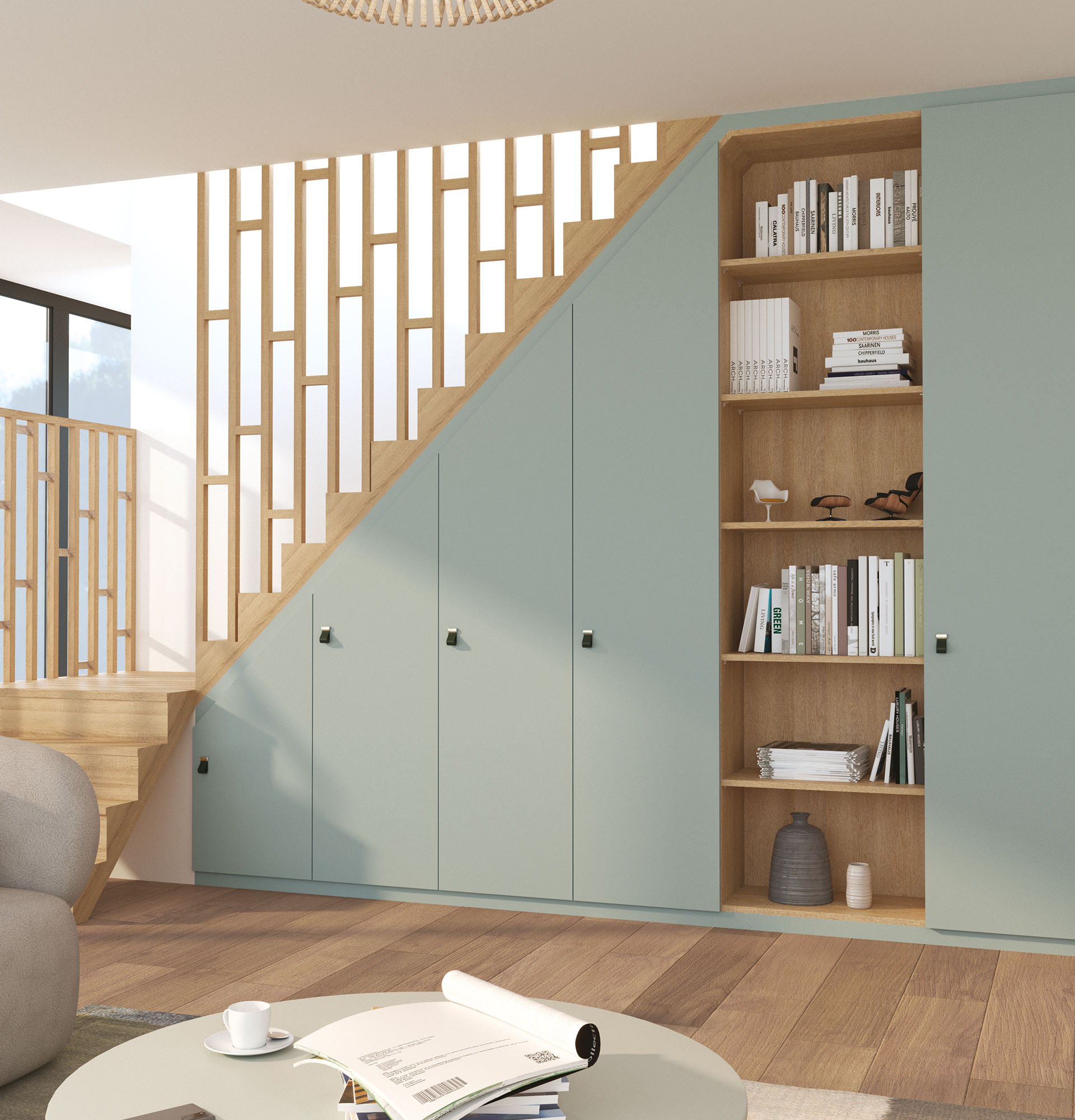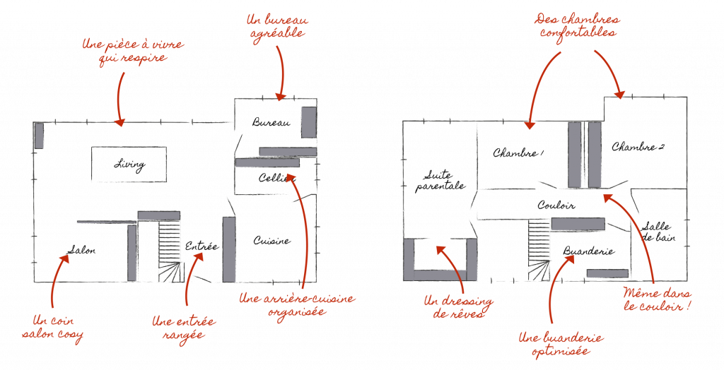 Un rangement sur mesure se glisse dans toutes les pièces de la maison. Salon, entrée, buanderie, cuisine, chambre d’enfant, suite parentale… Il trouve sa place partout.