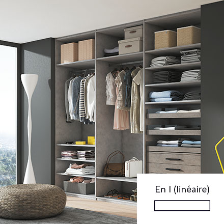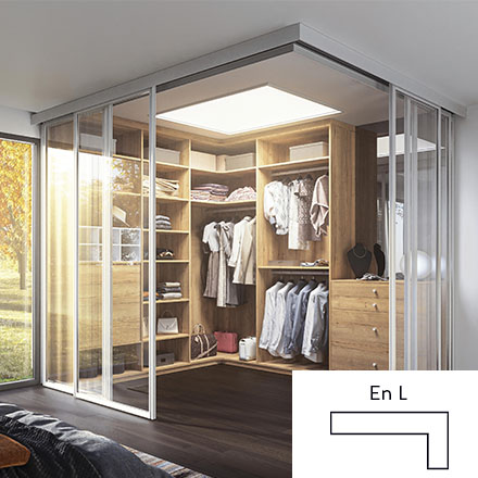Votre rangement peut s’adapter aux dimensions de votre pièce. On distingue plusieurs formes d’aménagement classiques mais elles s’adaptent et se transforment en fonction de vos envies.