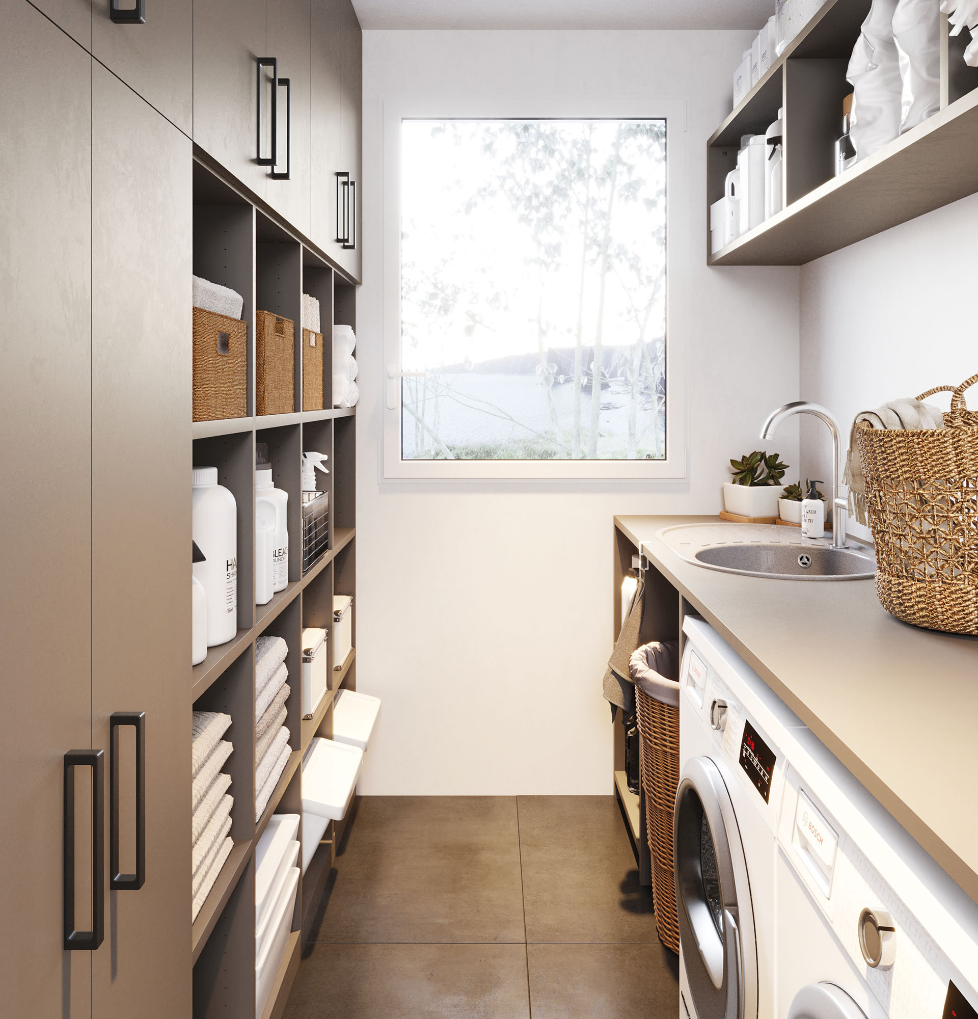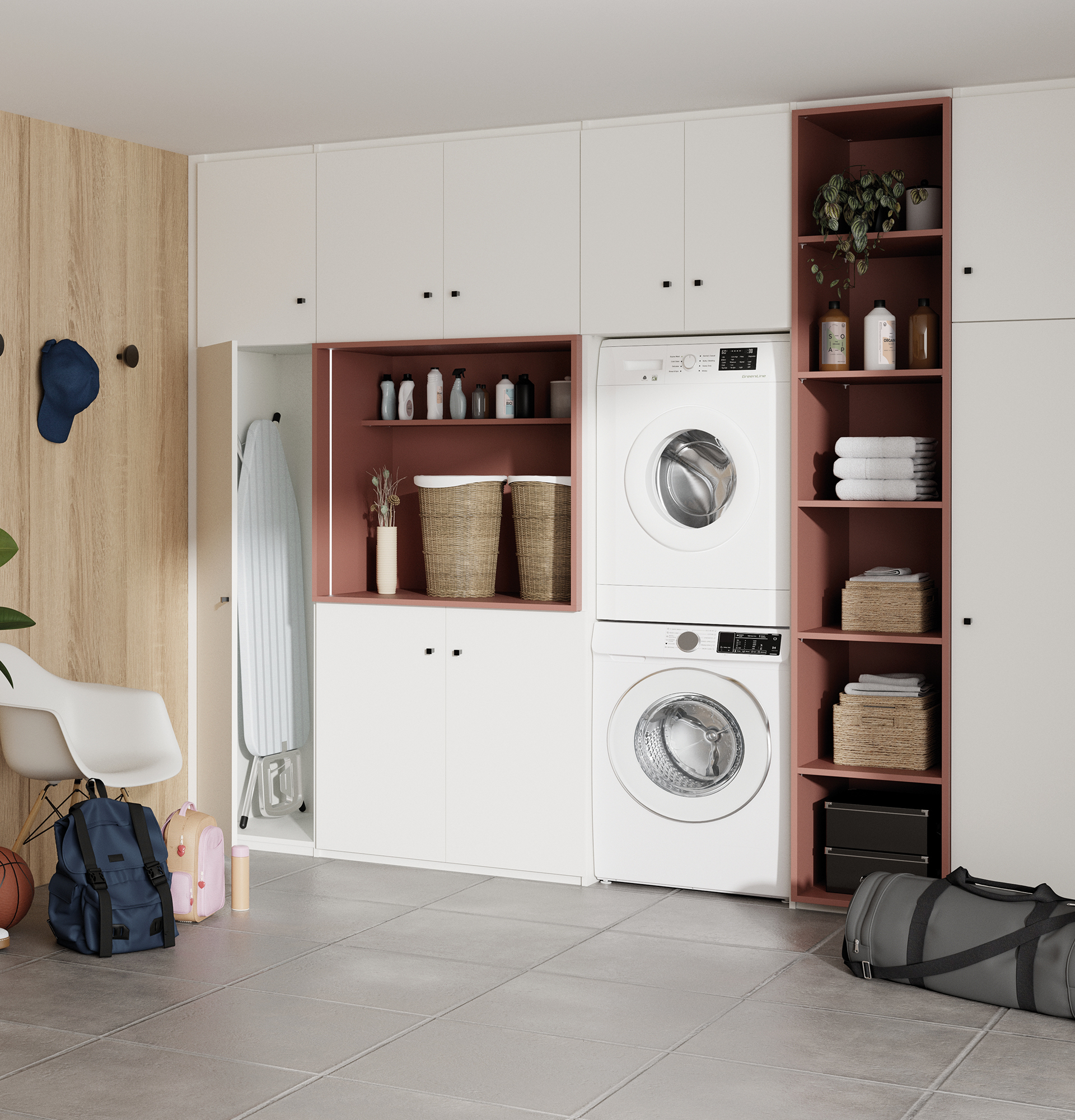 • Buanderie / arrière-cuisine : c’est également le meilleur allié au quotidien pour les pièces secondaires. Bien pensés, ces espaces facilitent les tâches ménagères et améliorent le confort de vie.