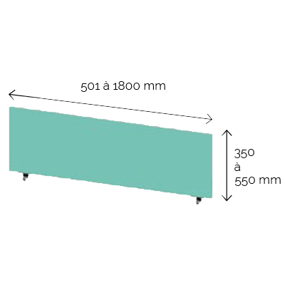 S’accrochant au plateau de bureau avec deux pinces gris argent, le séparateur de bureau se décline sur une longueur de 50 cm à 1,80 m et sa hauteur est disponible de 35 à 55 cm.