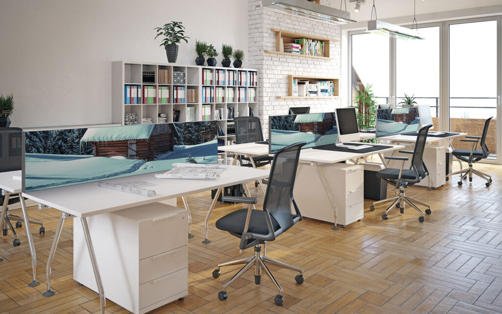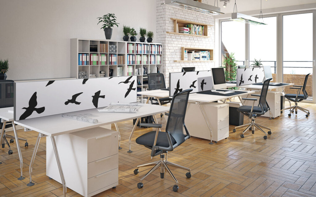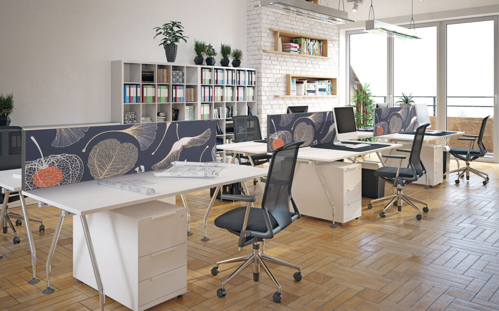Pour les plus espaces neutres ou appelant à la discrétion, nos designers ont pensé des créations adaptées à des ambiances feutrées, comme les modèles Papier ou Gravitation. D’autres choix plus marqués peuvent aussi apporter une touche décorative forte au bureau, comme les décors Tsuru ou Végétal.