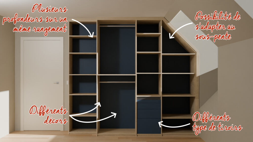 Cette solution permet d’optimiser votre espace de rangement jusque dans les moindres recoins. Vous pouvez ainsi profiter de toute la place pour ranger vos affaires.
